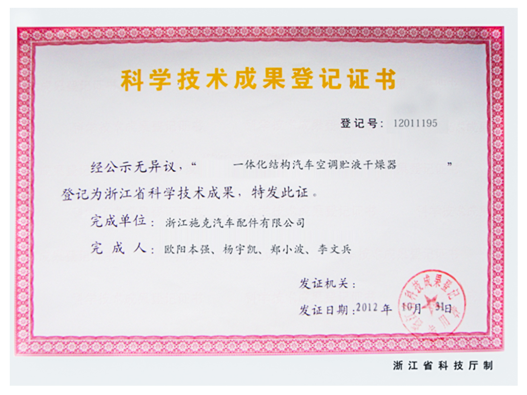: 科學技術成果登記證書